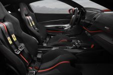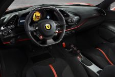 Au programme, un régime qui a permis de gagner 90 kg vis-à-vis du modèle standard mais qui développe 50 ch de plus pour un total de 720 ch à 8’000 t/min. Le couple s’améliore également à 770 Nm à 3’000 t/min contre 760 Nm pour les déclinaison GTB et Spider. En d’autres mots, c’est le plus puissant V8 jamais produit par Ferrari pour une voiture de série et les résultats sont là: 0 à 100 km/h en 2.85 secondes, 0 à 200 km/h en 7.6 secondes et elle dépasse les 340 km/h.
