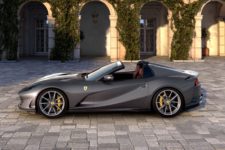 Les plus pointus dans l’audience pourraient être tenté d’objecter sur l’affirmation d’ouverture à cette nouvelle, en arguant que Barchetta Pininfarina 550 de 2000 ou encore la 599 SA Aperta de 2010 emportait bien un V12 à l’avant. Sauf que chacune figure parmi la liste de modèle à production limitée. Il s’agit bien avec la 812 GTS d’un véhicule de série, embarquant un bloc de 6.5 litres, 12 cylindres en V, produisant 800 chevaux à 8’500 t/min et dégageant un couple de 718 Nm. En termes de performance, la Spider tutoie de très près sa sœur la 812 Superfast, avec un 0 à 100 km/h en moins de 3 secondes et une vitesse maximale de 340 km/h.
