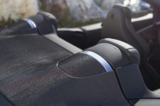 Dans le but de limité les bruits et autres remous aérodynamiques, une petite lame de 5mm se déploie au dessus du pare-brise. Au niveau des sièges arrière, ils restent minuscules mais sont encore présents. C’est donc le coffre qui perd de l’espace mais le constructeur n’a pas donné de chiffre (pour rappel, celui de la Roma “normale” propose 272 litres).