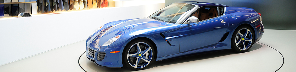 Hormis la couleur très particulière, “Blu Antille” comme la 400 Superamerica Cabriolet de 1961 que possède le client, les jantes bicolores et l’aileron arrière au goût douteux, vous noterez le doublement de la prise d’air sur les ailes avant, pas vilaine, ainsi que la disparition des ailettes sur les montants arrière.