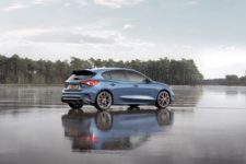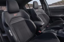 Revenons à cette nouvelle Focus ST qui se décline, comme la génération précédente, en essence et en diesel. Cette dernière dispose d’un 2.0 EcoBlue de 190 ch, soit 40 ch de plus que la version “normale” dont nous vous proposerons un essai complet très prochainement. Pour les amateurs de sportivité, c’est plutôt l’autre qui vous intéressera, à savoir l’essence. Sous son capot, un 2.3 EcoBoost qui développe 280 ch. Cette mécanique, entièrement en alu, est la plus puissante jamais proposée sur une Focus ST. La puissance sera transmise sur les roues avant exclusivement via une boîte manuelle 6 rapports et on note aussi l’arrivée de la technologie Rev-Matching déjà disponible sur la Mustang. En option, une transmission automatique 7 vitesses est également disponible.