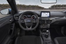 la première fois sur une Focus ST, on retrouve 4 modes de conduite (Normal, Faible adhérence, Sport et Track, pour autant que la voiture dispose du Performance Pack), ainsi qu’un différentiel à glissement limité. De plus, en option, il sera possible d’équiper l’auto des suspensions actives (Ford CDD), mais uniquement sur la berline 5 portes. Car oui, cette nouvelle ST sera proposée aussi en version break, appelée Station Wagon.