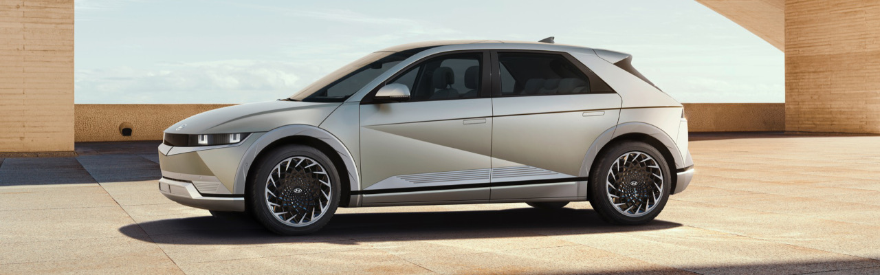 A regarder les photographies de la IONIQ 5, on se dit immédiatement que le dernier concept-car venu d’Asie est original, mais qu’une nouvelle fois, on ne le verra pas sur nos routes. Détrompez-vous, il s’agit bien d’un véhicule de série ! Le design extérieur en premier lieu surprend, avec ses dimensions de segment D et ses divers éléments sophistiqués. Les projecteurs, dits « pixels paramétriques » sont directement intégrées aux éléments de carrosseries et fournissent des signatures lumineuses très distinctives. Le capot avant est monobloc, une première pour un véhicule Hyundai. Autres éléments forts sont à noter : les moulures latérales et la ligne transversale confèrent au modèle un dessin très particulier.