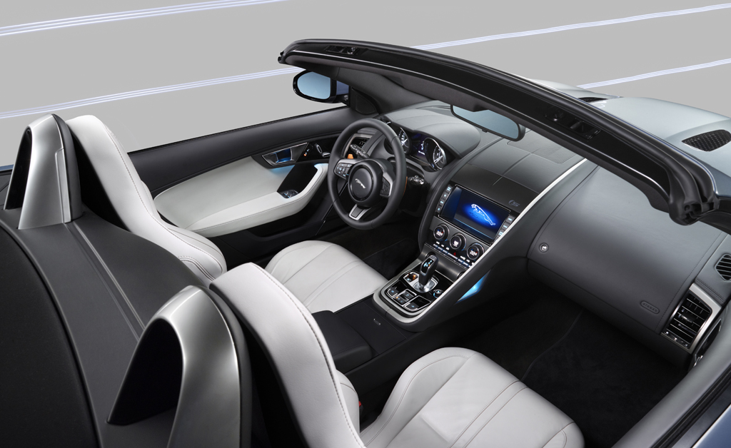 Cette F-Type puise ses sources dans la plus pure tradition Jaguar et aussi bien son nom que ses lignes nous font penser à sa mythique ancêtre, la somptueuse E-Type. Selon Adrian Hallmark, le Global Brand Director de la marque, la F-Type rallume la flamme de la sportivité chez Jaguar dont l’histoire remonte à plus de 75 ans. Avec une carrosserie entièrement en aluminium et une capote en tissu, la F-Type annonce un poids de seulement 1’597 kg pour la version de base. Comme à son habitude, le constructeur nous promet une finition luxueuse et un équipement ultra complet, le tout en combinaison avec la sportivité d’une voiture de ce type.