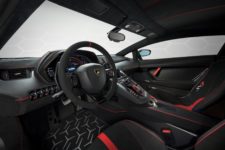 Pour réussir cet exploit, la firme italienne a misé sur un V12 atmosphérique de 770 chevaux à 8’500 t/min et 720 Nm de couple à 6’750 t/min. Dotée d’une transmission intégrale et des quatre roues directrices, l’Aventador SVJ achève le 0 à 100 km/h en 2,8 secondes et le 0 à 200 km/h en un tout petit 8,6 secondes. La vitesse maximale, selon le constructeur, dépasse les 350 km/h, sans guère plus de précision.