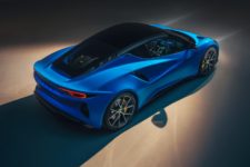 La dernière-née du constructeur britannique, dont le nom signifie dans de multiples langages anciens « meneur » ou « commandant », abandonne le postulat de la chasse au poids superflus et verse dans le sportif confortable. Pour preuve, le poids total de la bête qui affiche 1’405 kilos, soit un fort embonpoint dans le référentiel Lotus. En matière d’esthétique, l’influence de la grande sœur Evija est plus que notable, avec un fort accent exotique, aux épaulements saillants et échancrures marquées.