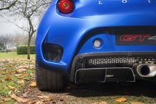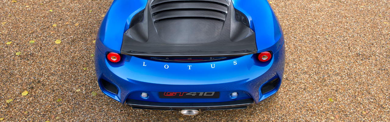 Les efforts et recherches investis dans le développement de l’Evora GT430 portent désormais leurs fruits et profitent grandement à ce modèle. Bien que la GT410 Sport soit moins extrême que sa grande sœur, on retrouve ici le même dessin et la même philosophie. L’avant accueille de nouvelles entrées d’air, pourvues de lame, guidant ainsi mieux l’air et permettant de générer plus d’appuie pour moins d’effet de trainée. A l’arrière, de larges ouvertures permettent à ce même air de s’échapper plus vite, concourant là encore à une meilleure aérodynamique. Ainsi, à 190 km/h, ce sont 96 kg d’appui qui sont générés, un impressionnant gain de 50% comparativement à l’Evora Sport 410.