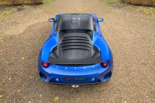 Qui dit Lotus, dit voiture poids plume. La carrosserie est en fibre de carbone de série et les plus demandeurs en performance peuvent opter pour la ligne d’échappement toute en titane ou pour le pack de suspensions de course Öhlins TTX, qui à eux seuls retirent 23 kg de la balance. Dans sa meilleure configuration, la belle pèse à vide un petit 1’256 kg. Il est à noter qu’il est possible de choisir entre le modèle 2 sièges uniquement ou 2+2 sièges.
