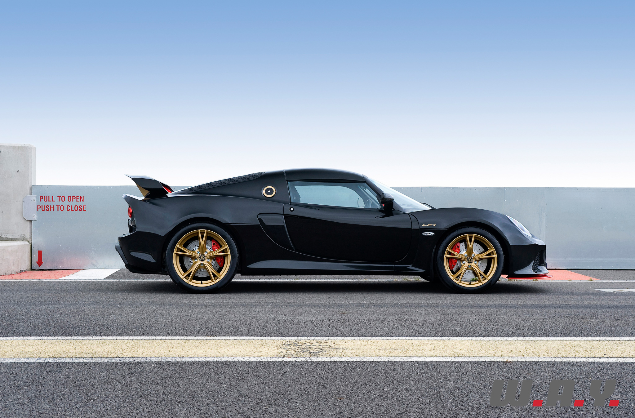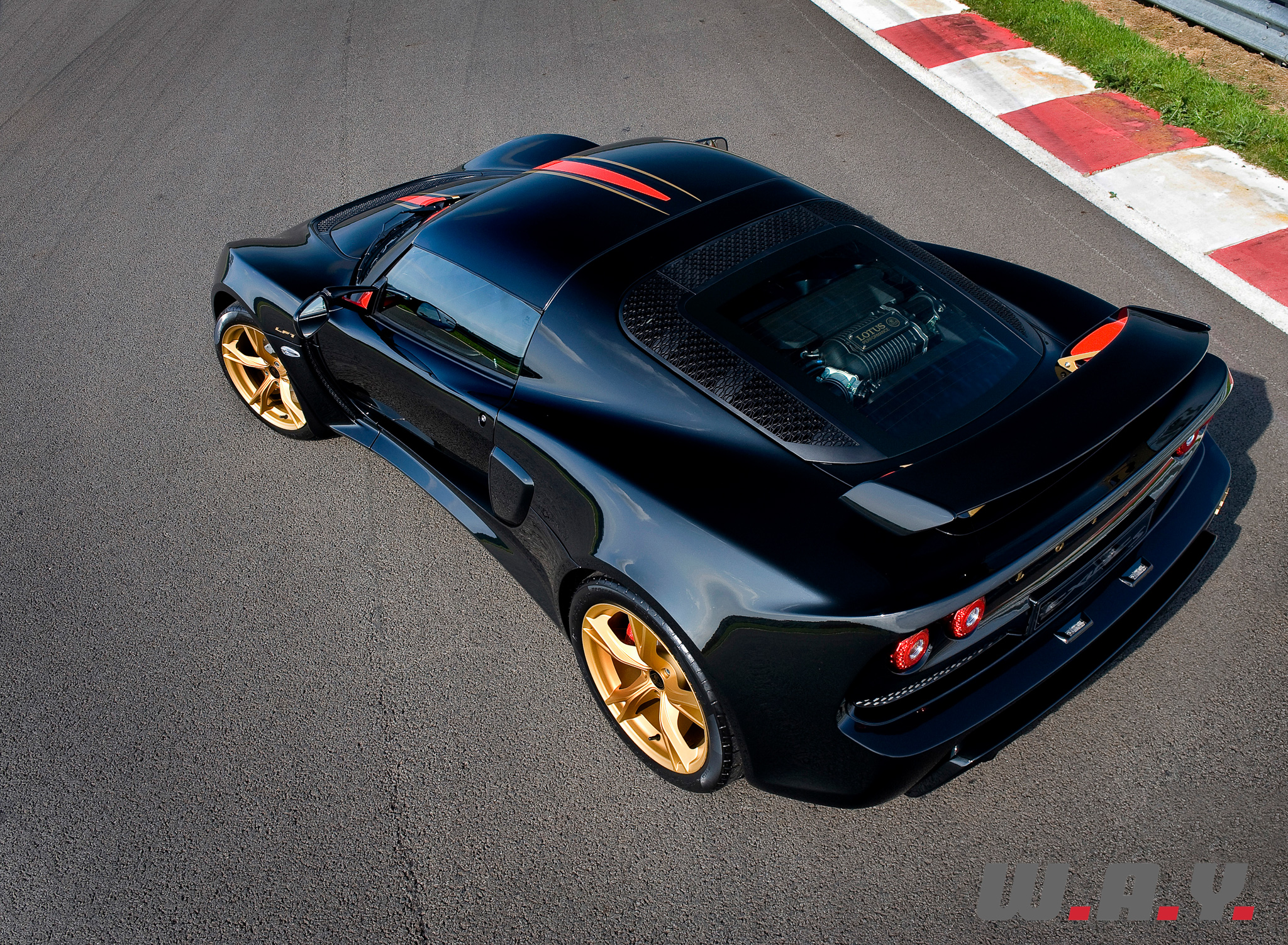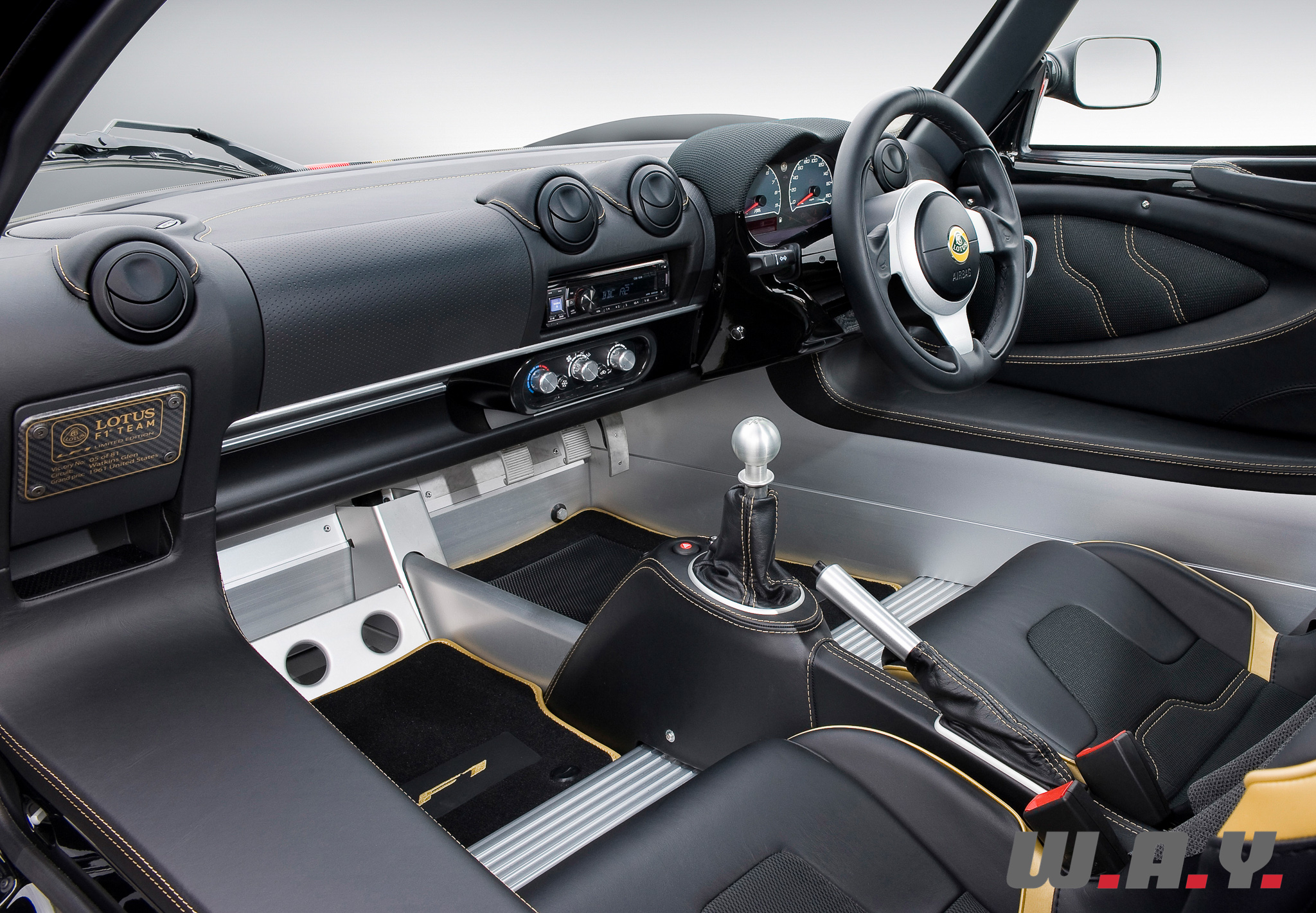 Tous les exemplaires seront livrés en noir et or, couleurs des F1 Lotus actuelles, inspirées par les fameuses Formule 1 Lotus alors sponsorisées par le cigarettier John Player Special dans les années 70. Un rappel des couleurs extérieures est également fait avec le choix de la sellerie intérieure.