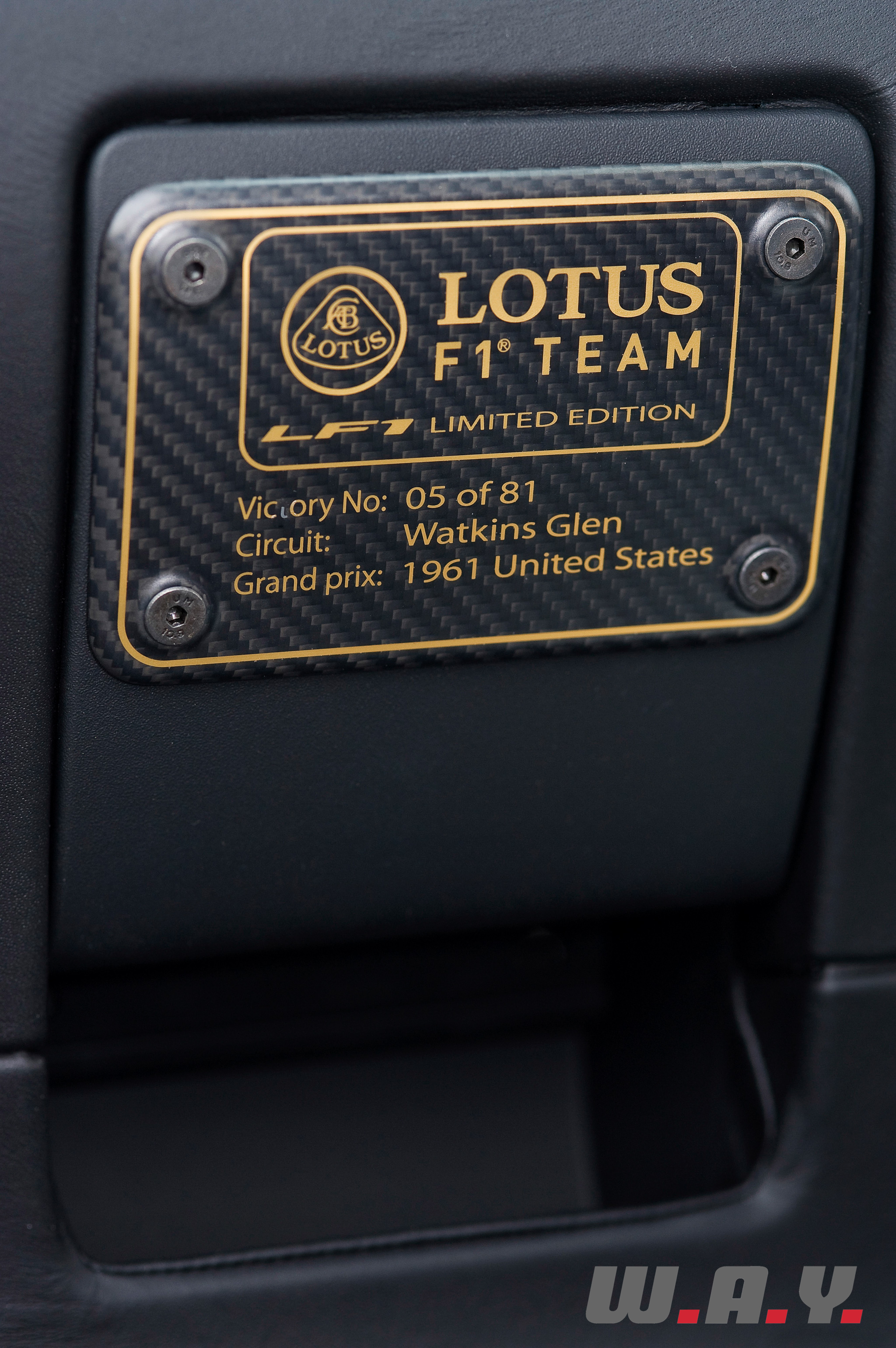 Baptisée “LF1”, cette série limitée à 81 exemplaires correspondant à chacune des 81 victoires de Lotus en Formule 1 depuis celle de Monaco en 1960 à celle de Melbourne en 2013 est basée sur l’Exige S de série.