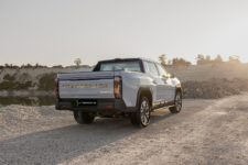 Avec une longueur de 5,50 mètres, soit 80 cm de moins qu’un Ford F150 Lightning, son seul véritable concurrent, dont nous vous avons proposé un essai complet récemment, le eTERRON 9 présente une capacité de charge utile de 620 kg et une surface de chargement extensible à 2,40 mètres grâce à une paroi arrière rabattable. Un coffre avant de 236 litres est disponible pour des bagages supplémentaires. Le pick-up dispose également d’un crochet d’attelage avec une capacité de remorquage de 3,5 tonnes.