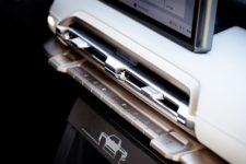 Le confort du véhicule est renforcé par des assises en cuir réglables électriquement, dotés de fonctionnalités de ventilation et de massage. Les sièges avant peuvent être transformés en couchette, et vingt compartiments sont répartis dans l’habitacle pour offrir des espaces de rangement supplémentaires.