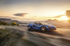 La motorisation reste inchangée, avec le V8 3.8 litres bi-turbo qui, couplé avec la boîte automatique sept vitesses, développe 570 chevaux et 600 Nm de couple. La marque de Woking se targue que la conception de cette 570S Spider permet de garder une rigidité, et donc des performances, similaire à la Coupé. Un 0 à 100 km/h est ainsi bouclé en 3.2 secondes, tandis que la vitesse maximum annoncée est 328 km/h, toit rabattu. Si une envie frénétique de vitesse et de grands souffles vous prend, il est possible d’atteindre 315 km/h avec les cheveux au vent.