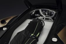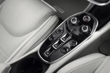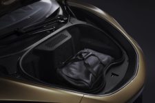 En matière de design, tous les éléments signature de la marque sont présents : projecteurs avant étirés, ligne supérieure de bouclier haute, prise d’air proéminente ou encore phares arrière ultra épurés. On peut tout même découvrir des épaulements arrière très musculeux, qui intègre sans rupture les écopes venant alimenter en air le cœur de la belle.