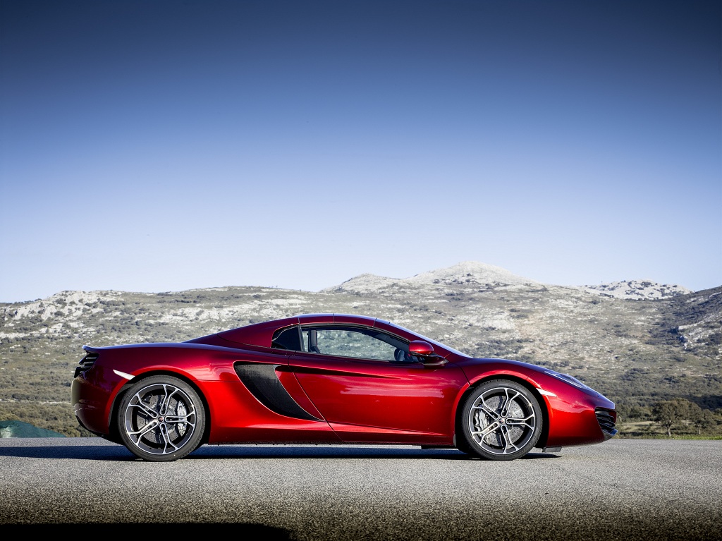 Annoncée depuis quelques temps, nous découvrons finalement les images de la MP4-12C Spider, concurrente directe de la Ferrari 458 Spider. Caractéristiques identiques à la MP4-12C, avec en plus la possibilité de profiter à ciel ouvert des vocalises du V8 biturbo, cette version Spider affiche une puissance de 625 CV comme pour la version 2012 du coupé. A ce propos le constructeur offre d’ailleurs gratuitement à tous les propriétaires d’une MP4-12C la modification pour passer de 600 à 625 CV. La conception du châssis “MonoCell” prévoyait initialement déjà une version décapotable, aucune modification n’a donc été nécessaire pour cette MP4-12C Spider par rapport au coupé et la différence de poids entre les deux voitures est de seulement 40kg. Fonctionnel jusqu’à 30km/h, il faut environ 17 secondes pour ouvrir ou fermer le toit rétractable de cette MP4-12C Spider. Il sera aussi possible d’ouvrir électriquement la petite vitre à l’arrière de l’habitacle indépendamment si le toit est rétracté ou non. Avec l’arrivée de cette nouvelle McLaren, le constructeur annonce aussi une nouvelle couleur “Volcano Yellow”, un nouvel intérieur en cuir et alcantara ainsi que des nouvelles jantes “Diamond Cut”. Sur les modèles 2013, il sera aussi possible en option d’opter pour un système permettant de relever la voiture, 40mm à l’avant et 25mm à l’arrière, pour faciliter le franchissement d’obstacles. La nouvelle McLaren MP4-12C Spider est déjà disponible à la commande, le prix en Suisse est de CHF 299’700.- et les premiers clients recevront leur voiture en novembre prochain.