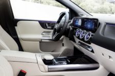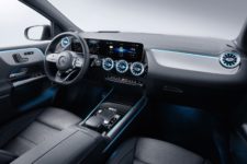 Le rendu global de l’intérieur progresse aussi, surtout le haut du panier en termes de finition. Le haut de gamme profite d’une combinaison de deux écrans de 26 cm de diagonale, installés l’un à côté de l’autre, ce qui confère à l’habitacle un aspect très high-tech. Côté électronique, comme à l’accoutumée, les avancées et nouveautés débarquant avec la Classe S finit par profiter au reste de la gamme : ainsi les aides à la conduite sont nombreuses et toujours plus poussées, tel que « l’Active Distance Assist DISTRONIC » qui applique une réduction de vitesse automatique en fonction des événements surgissant au-devant de l’auto (bouchon soudain, ralentisseur, piéton).