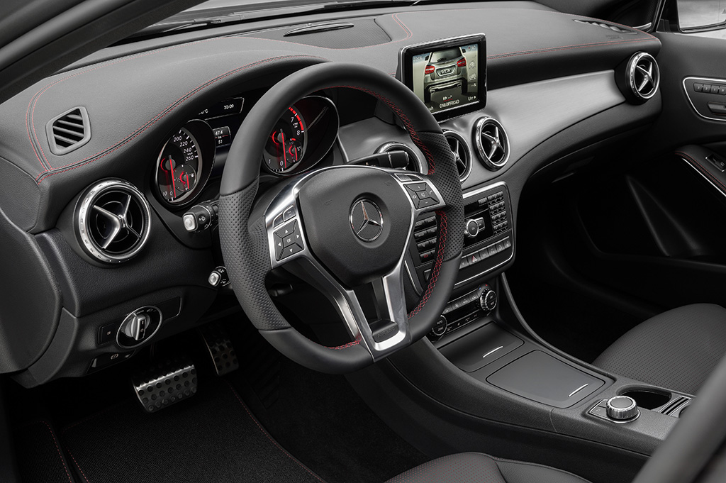 Le Mercedes GLA reprend à l’identique au presque les traits du Concept GLA avec une taille très compacte (longueur 4’417 mm, largeur 1’804 mm, hauteur 1’494 mm) et un look résolument dynamique. L’ambiance à bord s’inspire de celle de ses cousines, la Classe A et la CLA, avec une finition exemplaire et un dessin plutôt moderne tout en conservant une pointe de sobriété pour ne pas choquer les fidèles clients de la marque à l’étoile.