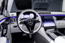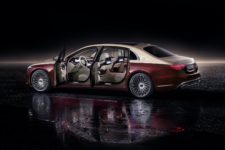 Si la base longue de la Classe S de Mercedes-Benz ne vous suffisait pas, la déclinaison Maybach ajouter 18 cm à l’empattement de cette dernière. Point d’erreur dans l’unité, on parle bien de centimètre ! Naturellement toute cette place supplémentaire est offerte aux places arrière, qui profite d’un confort de premier ordre. Parmi les nouveautés marquantes, on peut noter que les sièges Executive (en option) intègrent désormais une fonction massage dans les repose-têtes, tout comme un chauffage pour épaules et cou. L’ouverture et la fermeture des portes arrière sont opérables, sur option aussi, électriquement, en plus d’intégrer le système d’angle mort, pour plus de sécurité lors de la sortie du véhicule.