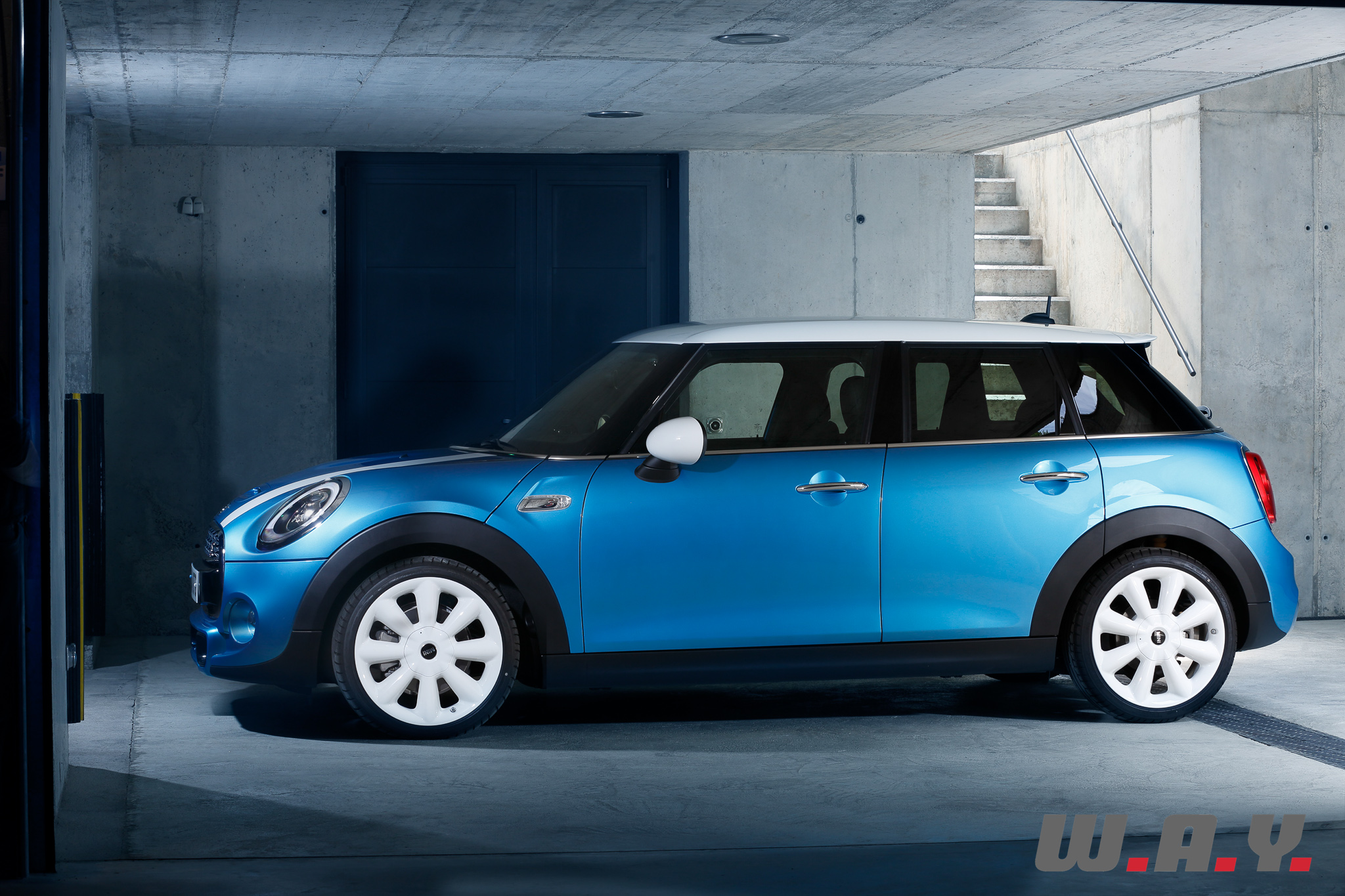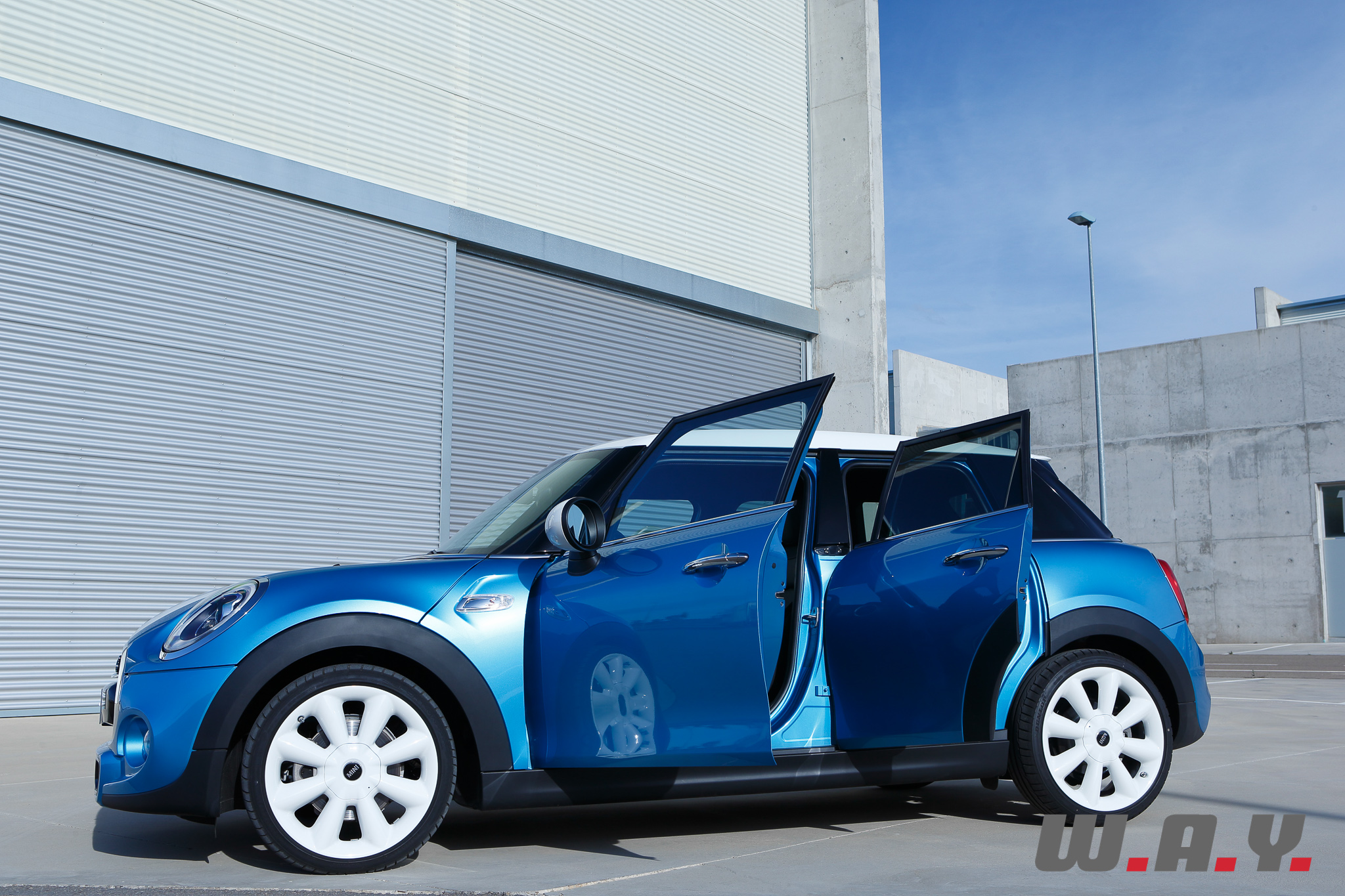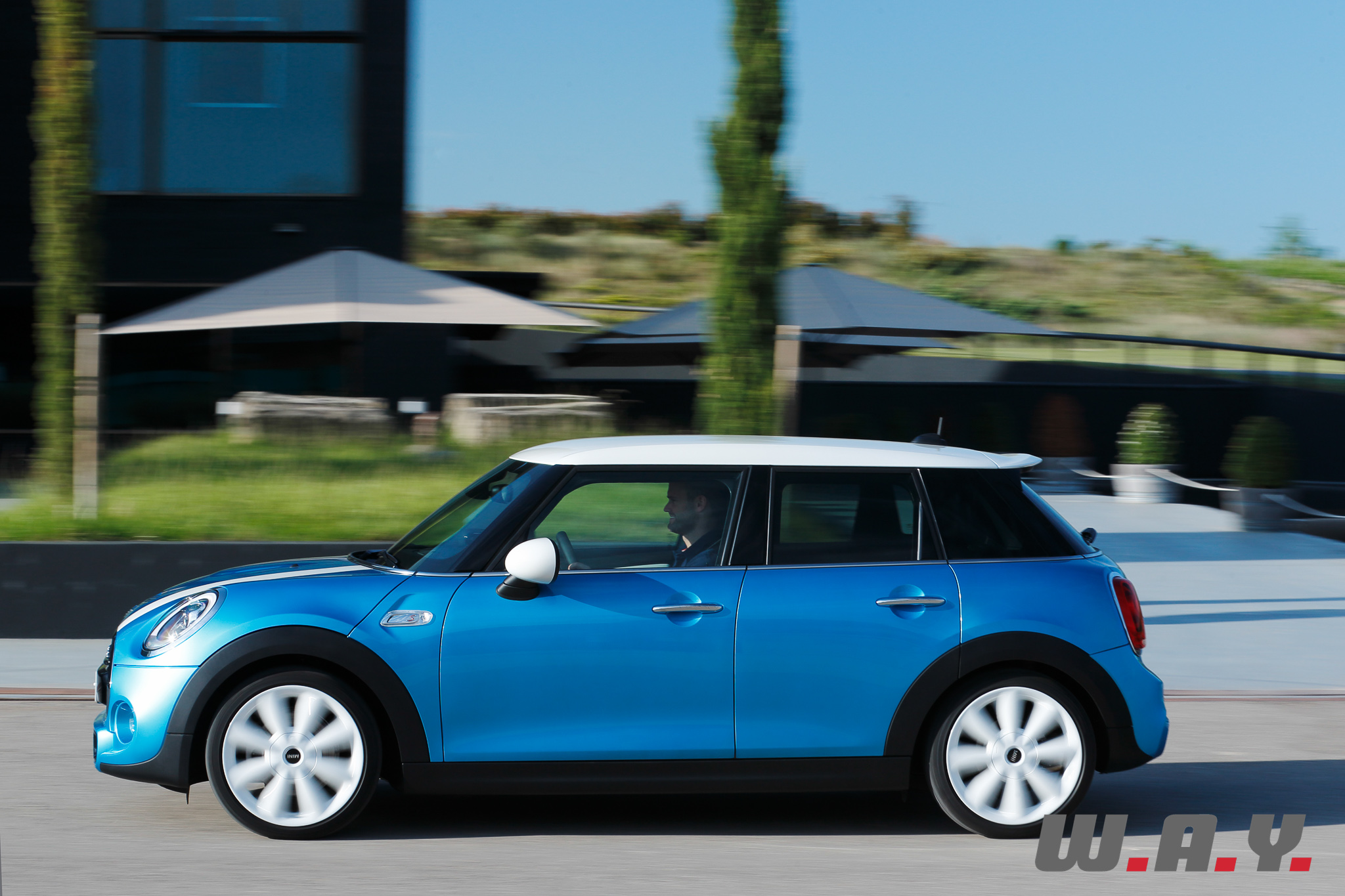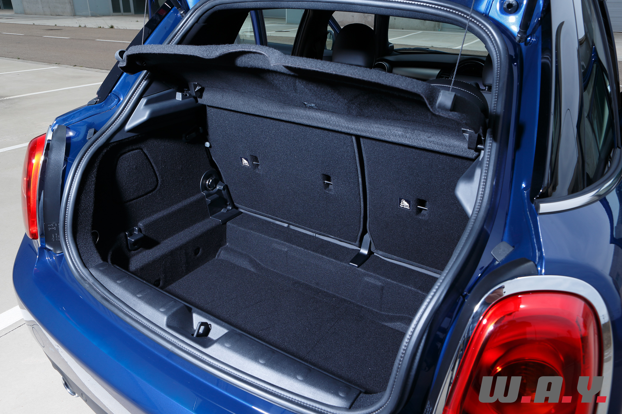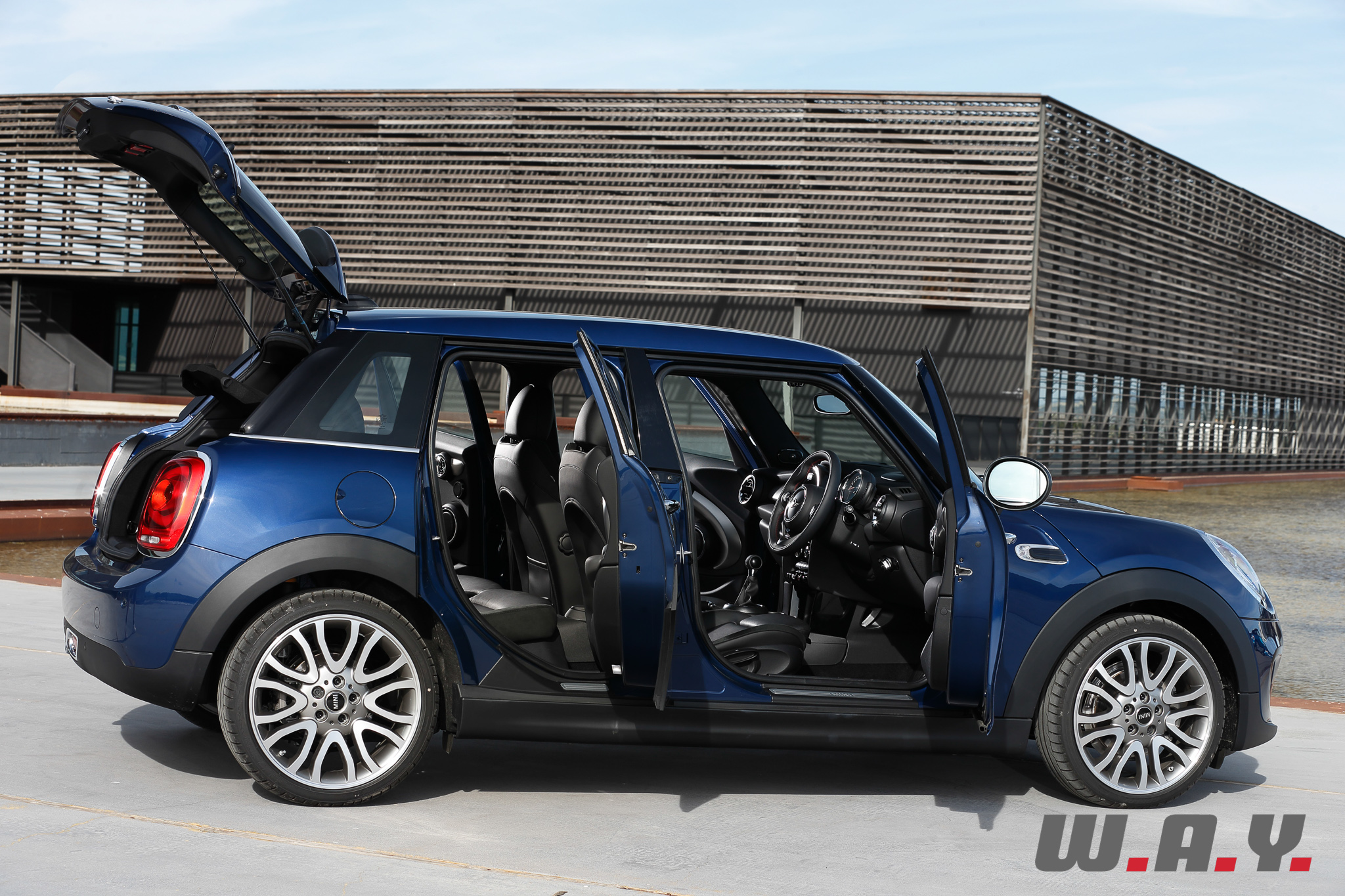 Basée bien entendu sur la Mini de troisième génération, qui sera d’ailleurs prochainement à l’essai chez Wheels And You, cette Mini 5 portes a un empattement allongé de 72 mm (empattement 2’567 mm) bénéficiant avant tout aux passagers arrière. Le reste des cotes intérieures évolue lui aussi avec une garde au toit accrue de 15 mm et une largeur aux coudes plus grande de 61 mm. Le coffre bénéficie lui aussi de l’allongement de la plateforme avec 278 litres de volume utile, soit 67 litres de mieux que la version 3 portes, grâce notamment à un double plancher.