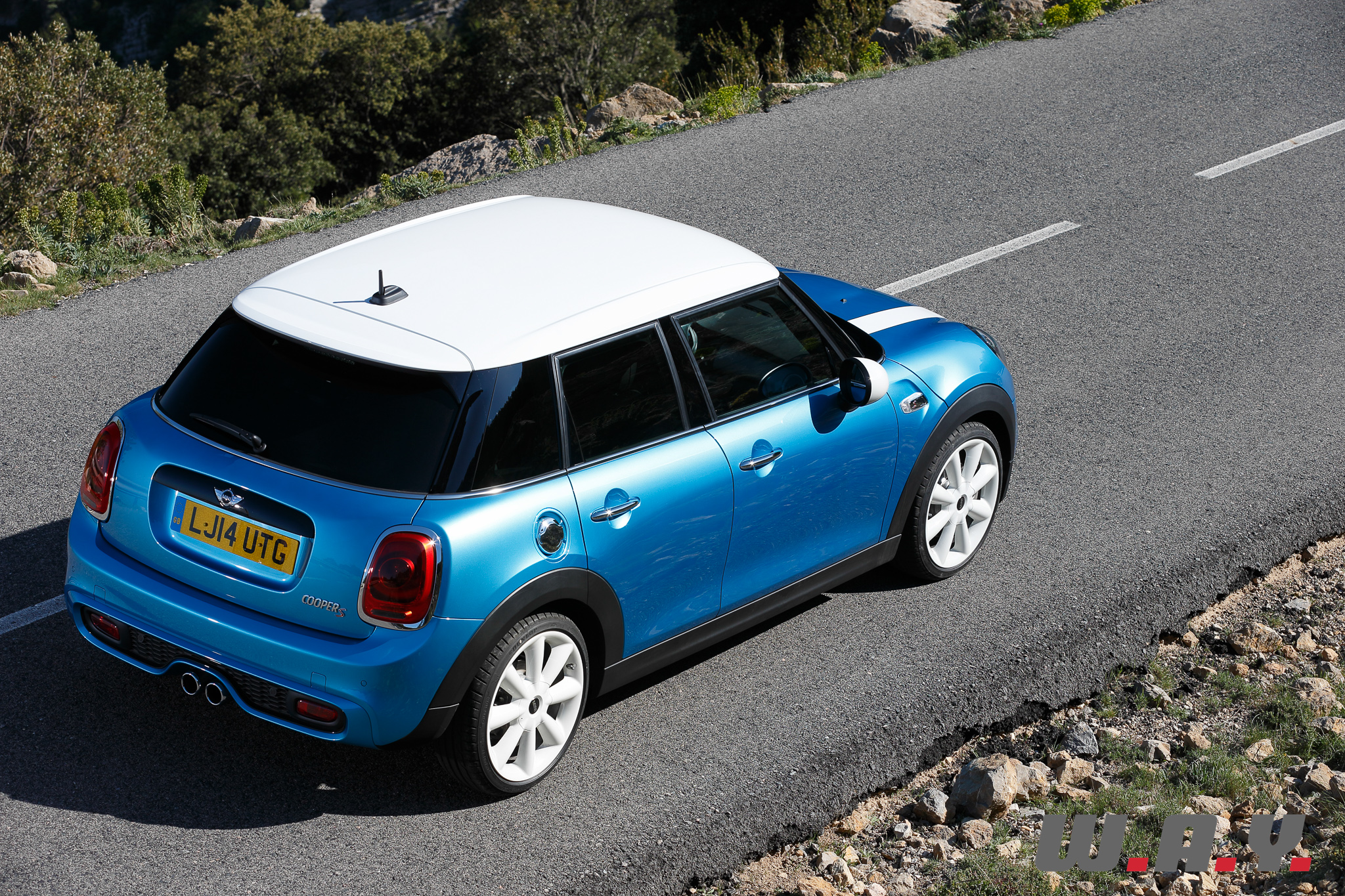 – Mini Cooper S 5 portes : 4 cylindres turbo essence, 1’998 cm3, 192 CV entre 4’700 et 6’000 t/min, 280 Nm entre 1’250 et 4’750 t/min (300 Nm avec overboost), 0-100 km/h en 6.9 sec. (autom. 6.8 sec.), vitesse maxi 232 km/h (autom. 230 km/h), conso. moyenne 5.9-6.0 l./100 km (autom. 5.4-5.5 l./100 km), CO2 : 136-139 g/km (autom. 125-128 g/km).