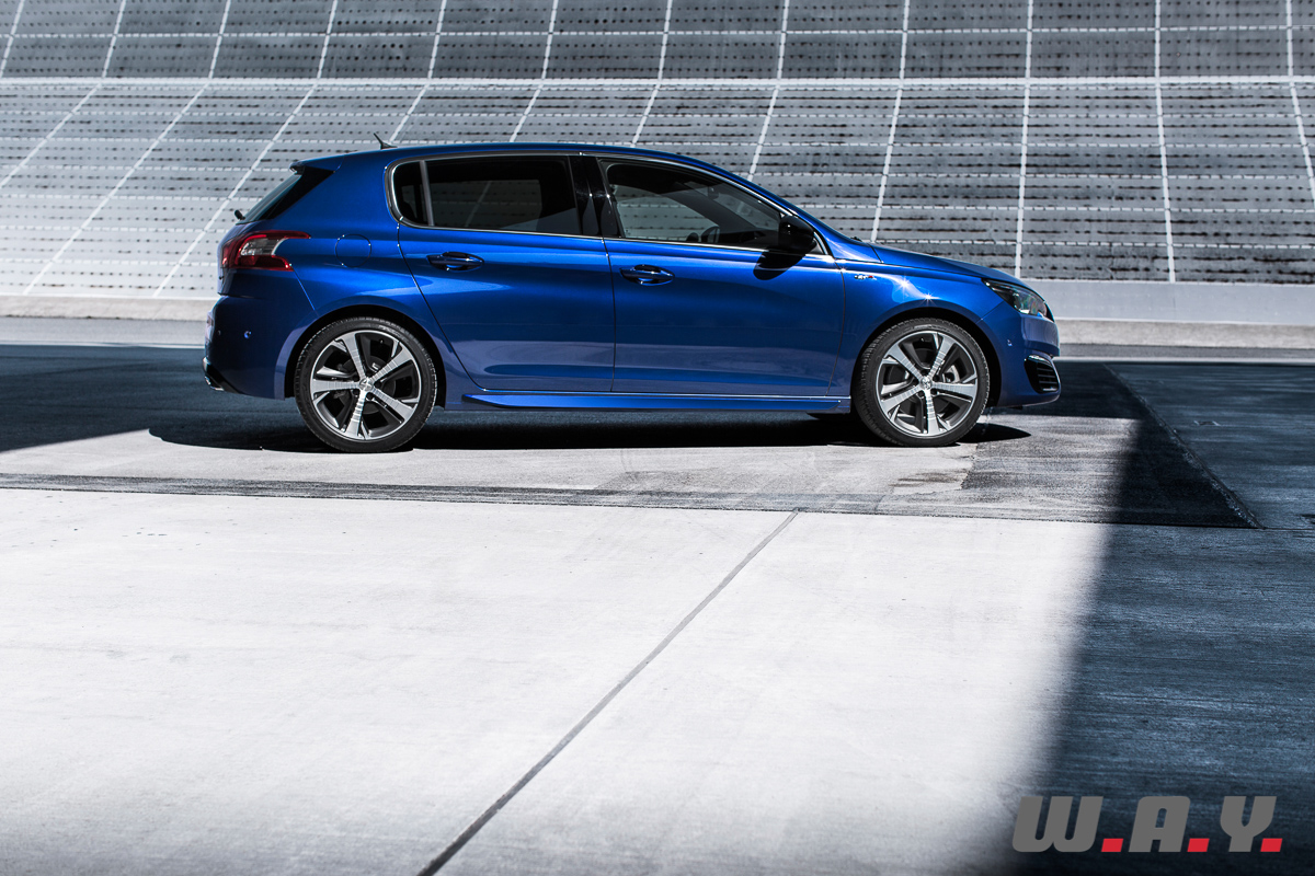Esthétiquement, la 308 GT arbore un look résolument sportif avec des boucliers et jantes spécifiques, la nouvelle calandre de la marque incluant le logo ou encore les doubles sorties d’échappement. Les trains roulants sont aussi propres à ce modèle, typés sport avec amortisseurs à butée hydraulique. Le châssis voit son assiette abaissée de 7 mm à l’avant et 10 mm à l’arrière. A noter également l’apparition au catalogue de cette magnifique teinte “Bleu Magnetic”, inspirée par la couleur historique des voitures de course françaises.