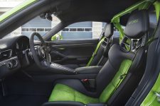 En gros, tout est meilleur dans cette nouvelle mouture de la 911 GT3 RS y compris le poids! Le moteur atmosphérique de 4 litres délivre une puissance de 520 ch à 9’000 t/min et la boîte à double embrayage PDK a été munie d’un tarage spécial pour encore améliorer la réactivité. Côté suspension et direction sur l’essieu arrière, tous les éléments ont été optimisés.