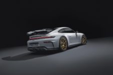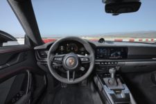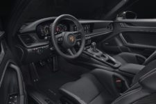 La 911 GT3 avec le pack Touring propose pour la première fois des sièges arrière en option, ce qui augmente son potentiel pour celles et ceux qui n’ont pas la vocation de dévorer les circuits mais souhaitent quand même opter pour une déclinaison relativement radicale. Le cockpit reprend les codes stylistiques de l’actuelle 911 en proposant tableau de bord central digital et un mode d’affichage simplifié pour la conduite sur circuit.