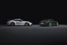 Cette 992.2 GT3 se décline en deux versions. Une première, avec un aileron arrière, est spécifiquement conçue pour arpenter l’asphalte des circuits, tandis que la seconde, avec le pack Touring, adopte un style plus discret, sans aileron fixe, pour une utilisation quotidienne.