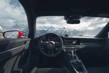 Pour se distinguer, les 911 GTS se distingue avec des détails noirs ou foncés à l’extérieur, comme l’arceau des Targa, le splitter du pare-chocs, les jantes en alliage léger, le sigle GTS sur les portières et à l’arrière, ou encore les deux sorties du système d’échappement. A l’intérieur, le levier de vitesse est raccourci de dix millimètres. Les sièges sport Plus et de nombreuses fournitures noires en Race-Tex sont livrés de série.