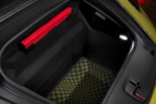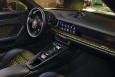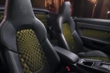 L’intérieur rend hommage au mythique motif Pascha, réinterprété en tissu moderne noir/olive neo, recouvrant les sièges Sport Plus, la boîte à gants et d’autres détails. Le combiné d’instruments numérique de 12,65 pouces adopte une présentation rétro avec aiguilles blanches et chiffres verts, évoquant la Porsche 356.