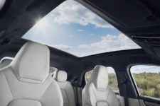 Au menu, il y a naturellement une refonte stylistique qui permet au grand SUV de gagner en finesse et en sportivité. Ainsi, la ligne de toit est plus plongeante, la chute de pavillon accueille toujours un aileron fixe. Le dessin des portes et des ailes arrière a été revu, gonflant les épaulements de 18 mm, de quoi conférer au modèle un caractère plus musculeux. La face arrière se voit ici équiper d’un aileron actif, qui agit à part entière dans le système « Porsche Active Aerodynamics » (PAA). A partir de 90 km/h, le spoiler de 135 mm se déploie et génère un appui supplémentaire sur l’essieu arrière. Le bouclier arrière a été légèrement revu pour un intégrer la plaque d’immatriculation, épurant le design du hayon et abaissant le profil de la voiture. Le pavillon est équipé de série avec un toit panoramique de 2.16 m2 mais peut être aussi pourvu d’un toit carbone profilé en option.