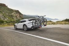 Tous les modèles sont équipés d’une large batterie d’une capacité de 93.4 kWh offrant un panel de puissance allant de 280 kW (380 ch) à 460 kW (625 ch) pour la Turbo S. Respectivement, le 0 à 100 km/h est franchi en 5.1 secondes à 2.9 secondes, alors que l’autonomie permet de couvrir de 389 km à 456 km. Petit détail cocasse, Porsche annonce un système inédit de porte-vélos… toujours utile quand les batteries seront vides.