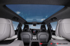 Connu pour être un 7 places, les ingénieurs n’ont pas sacrifié la 3ème rangée en raccourcissant la caisse. Lors de la commande on peut gratuitement opter pour 2 sièges supplémentaires. Le coffre de 777 litres, à condition d’avancer la deuxième rangée au maximum, passe alors à 159 litres. Reculée au maximum, le rang 2 offre 321 mm d’espace aux genoux et le dossier peut être incliné jusqu’à 31°. Ce généreux volume ne devient qu’un véritable atout que lorsqu’on choisi le toit panoramique vitré optionnel. Avec 1,33 mètre de long et 0,84m de large, il illumine l’habitacle en le baignant de lumière ambiante. Le verre est doté d’une couche basse émissivité sur sa surface intérieure qui filtre les UV, la pluparts des infrarouges et de barrer la route de la chaleur extérieure. Renault se passe ainsi d’installer un rideau occultant.