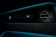 Les designers ont profité de ce modèle pour ajouter moults nouveautés à l’intérieur, en développant de nouveaux matériaux. L’alliage bois/carbone/métal en motif de diamant, qui recouvre divers éléments d’habillage, en est le plus bel exemple. Intégralement fait mains, ce support combine artisanat traditionnel et techniques modernes, pour proposer un effet en trois dimensions très surprenant.