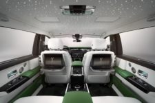 La marque de Goodwood n’est pas en reste sur les technologies embarquées à bord de son fer de lance. A commencer par des jantes spéciales en référence aux roues de la première Phantom sortie en 1920 ou encore les phares baptisés Starlight. Littéralement, c’est 580 faisceaux lumineux qui éclairent la voie “céleste” de cette dernière Rolls-Royce.
