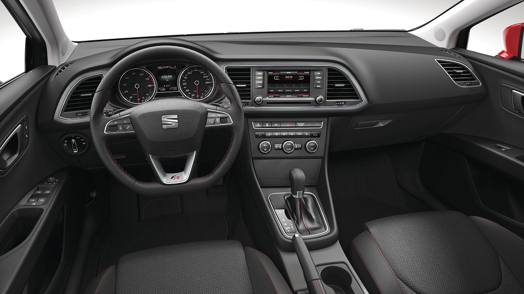 La nouvelle Seat Leon affirme son image dynamique avec un design moderne et stylisé. Les courbes des modèles précédents ont laissé place à des lignes plus acérées accentuant le coté jeune du modèle, avec en option des phares à signature LED qui s’inspirent de ses cousines germaniques. Si la voiture elle-même n’a pas pris une taille, le volume intérieur est plus généreux avec une finition en hausse. La marque espagnole profite de l’arrivée de cette Leon pour afficher son nouveau logo au dessin plus épuré.