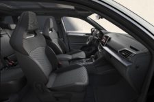 A l’intérieur, on peut citer l’équipement de sièges baquet avec appuie-têtes intégrés réglables électriquement ; le volant sport et le pédales en aluminium font aussi partie de la dotation de série.