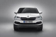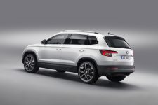 En matière esthétique, le Karoq est fortement similaire au Kodiaq : signature lumineuse à deux étages à l’avant, double arêtes saillantes sur le capot et bouclier avant imposant pourvu d’une baguette couleur carrosserie. La face arrière se différencie davantage avec ses phares distinctifs et son bouclier noir.