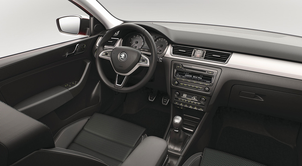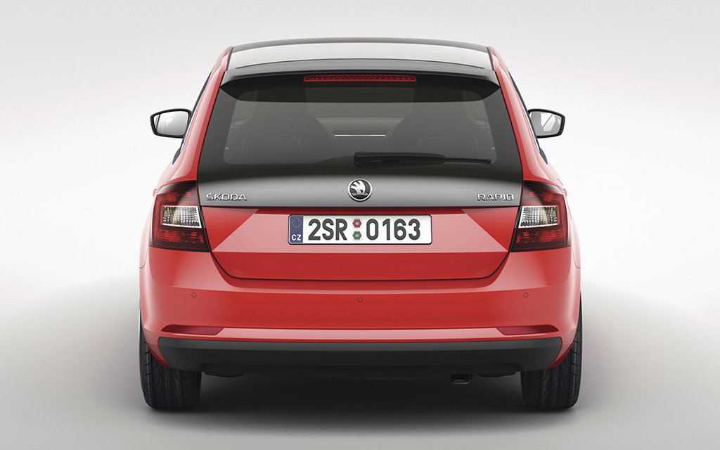 Malgré que la voiture soit 18 cm plus courte, La ligne générale de la Rapid Spaceback reprend en toute logique le design de la berline, à l’exception bien évidemment de l’arrière. On y retrouve un hayon avec une grande lunette arrière rendant l’ensemble plus compact, relativement proche du dessin d’un coupé au lieu d’un simple break. En option, il sera possible d’opter pour un immense toit panoramique ainsi qu’une vitre arrière prolongée. Dans ce cas, la vitre disposera d’environ 10 cm supplémentaire et l’association des deux apportera une très grande luminosité aux occupants. A bord justement, l’espace n’est pas en reste indépendamment que la Spaceback soit plus courte que la Rapid normale puisque l’habitacle est tout aussi généreux que sur la berline. Le coffre dispose d’un volume de chargement de 415 litres, atteignant même 1’380 litres une fois la banquette arrière rabattue.