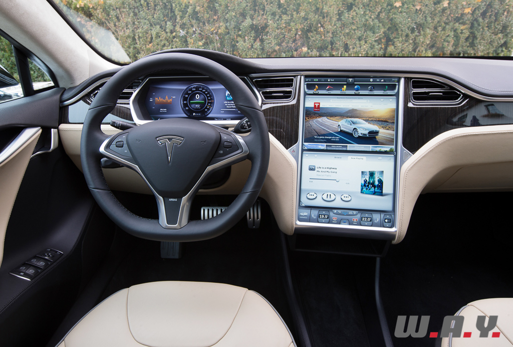 La Model S inaugure également un système d’assistances à la conduite dénommé “Autopilot”. Ce système utilise 12 capteurs à ultrasons et une caméra embarqués dont la voiture dispose par défaut dès sa sortie d’usine pour toute les Model S depuis la fin septembre 2014. L’activation se fait au moyen du “Tech package” (optionnel) et offre notamment le freinage anticollision et la surveillance de franchissement de ligne. D’autres fonctionnalités seront introduites au fur et à mesure des mises à jour du logiciel.