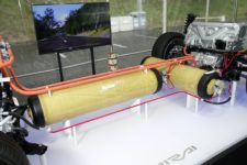 Construite sur la plateforme GA-L (Lexus), la marque japonaise propose un troisième réservoir à hydrogène afin d’augmenter l’autonomie de manière significative. Concrètement, Toyota annonce 30% d’autonomie en plus et c’est environ 650 km au travers d’un moteur (pile à combustible) de 174 ch. Dotée de cinq vraies places, cette berline de pratiquement 5 mètres passe de 0 à 100 km/s en 9.2 secondes.