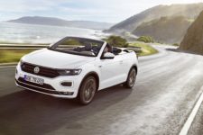 Pour revenir à ce T-Roc Cabriolet, il sera lui disponible en deux niveaux de puissance, 115 et 150 ch. Le petit trois cylindres disposera exclusivement d’une boite manuelle 6 vitesses, alors qu’il sera possible en option d’avoir la DSG 7 rapports sur le 4 cylindres 1.5. En terme de ligne, basé sur la plateforme MQB, cette mouture décapotable reprend les lignes de la version normale avec en guise de couvre-chef une capote en tissu, comme traditionnellement sur les Coccinelle et Golf. Equipements et finitions seront ceux qu’on retrouve habituellement sur le reste de la gamme T-Roc.