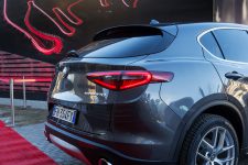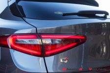 L’empattement est celui de la Giulia mais la hauteur sensiblement supérieure (1.67), comme la garde au sol et les voies élargies. La face avant est très semblable à celle de la Giulia et c’est sans doute là que l’esthétique est la plus racée. Le profil de 4.68 mètres est tendu, sans fioritures, avec une vitre de hayon très inclinée, alors que l’arrière est plus conventionnel. Les flancs sont assez hauts avec une ligne de fenêtres plutôt fine. Le tout est harmonieux et décline tous les éléments du nouveau style Alfa Romeo.