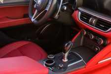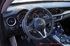 L’intérieur est celui d’une Giulia, autant pour le tableau de bord que pour les commandes de climatisation, la sélection de vitesse et le volant. Seules les proportions de la planche de bord varient, l’intérieur étant plus haut, à l’image du véhicule. L’écran central n’est pas tactile mais commandé par une grosse molette derrière le levier de vitesses. J’ai également le plaisir de retrouver des palettes fixes de part et d’autre du volant. Mon seul regret vient des sièges avant dont l’assise ne peut être suffisamment abaissée à mon goût.