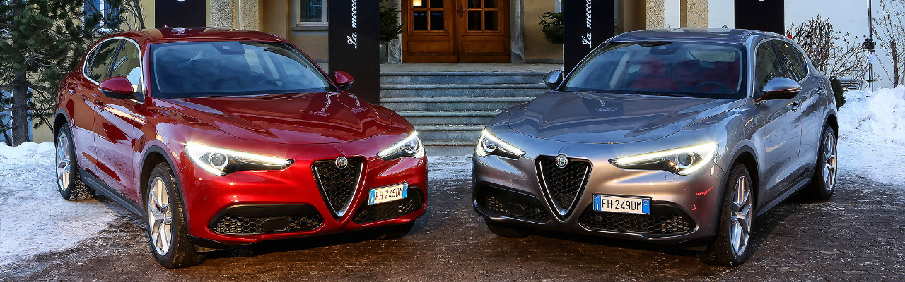Alors que la version Quadrifoglio présentée en novembre n’est pas encore disponible, le Stelvio propose dès maintenant deux motorisations 4 cylindres longitudinales : le premier en diesel « tout aluminium » de la marque, 2.2 litres de 210 ch et 470 Nm, le second en essence turbo de 280 ch et 400 Nm entre 2’000 et 5’000 t/min. Deux autres motorisations complèteront prochainement la gamme : un diesel de 180 ch avec une transmission par propulsion uniquement et un essence de 200 ch. Enfin, la version Quadrifoglio disposera d’un V6 dès fin 2017.