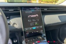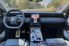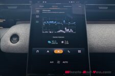 Le design intérieur s’articule autour d’un grand écran central tactile, ancré en haut du tableau de bord d’un côté et fixé à la console centrale de l’autre pour un effet cascade. Il est soutenu par une petite rangée de commandes physiques situées au-dessous. Loin d’être fastidieux et difficiles à trouver, les boutons de climatisation s’affichent en permanence en bas de l’écran, quel que soit le menu. Cela fonctionne plutôt bien même si l’écran est dépourvu de profondeur ou de fonctionnalités supplémentaires ; il est simplement immense.