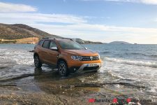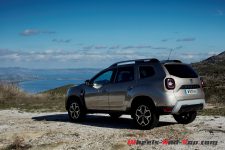 La garde au sol ainsi que les angles d’attaque et de fuite sont des attraits majeurs pour les clients du Duster. Sur cette troisième génération, c’est un point qui s’améliore à leur demande. L’auto n’a pas seulement un look baroudeur, elle se permet aussi d’évoluer en tout chemin sans exposer de partie mécanique. Nos deux modèles traction du SUV Dacia évoluent tranquillement sur ces routes grecques à la limite du carrossable.