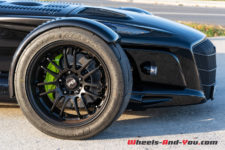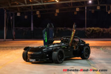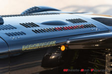 Donc, en matière de design, c’est un peu comme si vous preniez une baignoire et que vous lui mettiez des roues à chaque extrémité, puis que vous arrosiez le tout avec des anabolisants. Mais pas juste un petit jet, non là vraiment vous y allez avec la lance à incendie, débit maximum. En fait, ça dégage quelque chose d’unique et difficilement descriptible, je vous laisse juger avec les photos et en vrai c’est encore plus impressionnant. Croyez-moi, lorsqu’on roule avec cet engin, difficile de passer inaperçu, même s’il fait nuit et que l’auto est noire.