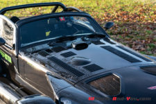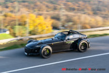 La Donkervoort D8 GTO est donc un roadster et la capote se démonte entièrement, à la main, pour venir prendre place dans le coffre. A noter que ce dernier propose un volume 250 litres, c’est plutôt généreux vu l’esprit de la voiture. De mon point de vue, un tel engin se roule décapoté tout le temps et cela même si l’air est plutôt frais en ce beau week-end de novembre. Je n’imagine donc même pas installer le toit, une bonne veste et une casquette font l’affaire, sans compter qu’il y a quand même un chauffage.