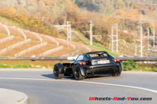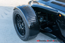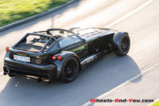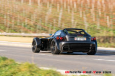 La cavalerie est distribuée sur les roues arrière exclusivement via une boite manuelle 5 rapports. Quand on sait que le joujou annonce un poids à vide de 695 kg, ça laisse présager des sensations exceptionnelles. A titre de comparaison, vu qu’elle dispose du même moulin, mais avec « seulement » 400 ch, la TT-RS Roadster essayée en début d’année pèse presque une tonne de plus. Moi qui étais resté sur ma faim avec l’allemande, je pense que je ne vais pas être déçu avec cette néerlandaise, ça va déménager. Bon, c’est sûr qu’avec 95% de la carrosserie en carbone, la Donkervoort se la joue poids plume.